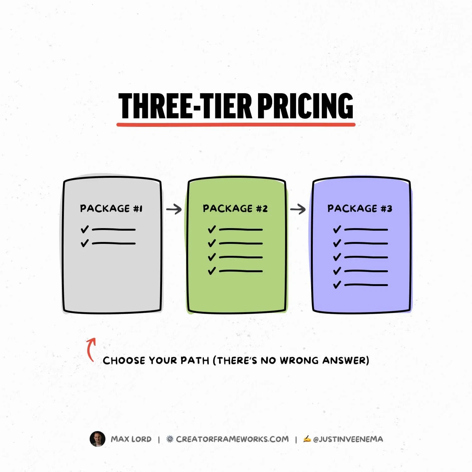 Multiple Package Options: Max offers clients three package options instead of just one-off videos, allowing him to propose ongoing video projects that address multiple pain points in their business. This three-tier pricing strategy is effective because it encourages clients to consider higher-priced packages with added benefits. The clear structure makes it easier for clients to choose a package that aligns with their requirements, streamlining the sales process. It also allows the customers to choose their own adventure (with no wrong answer).